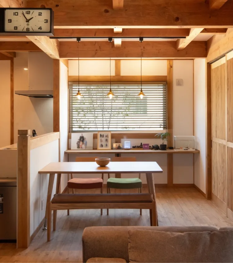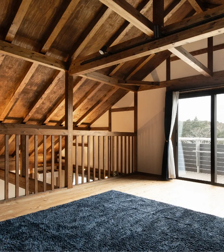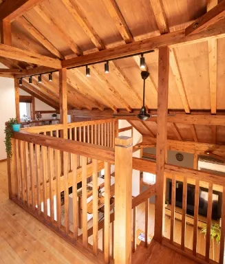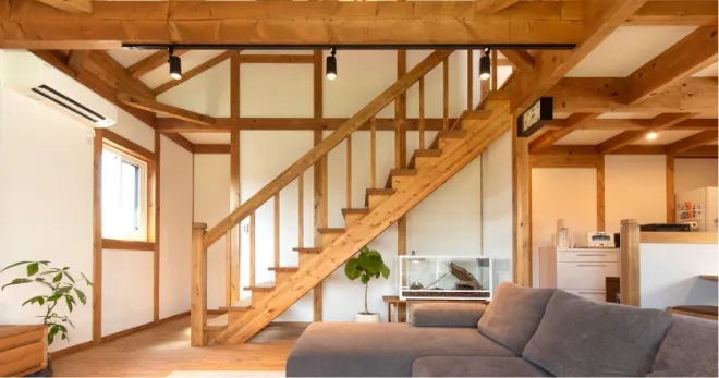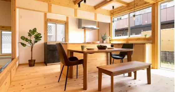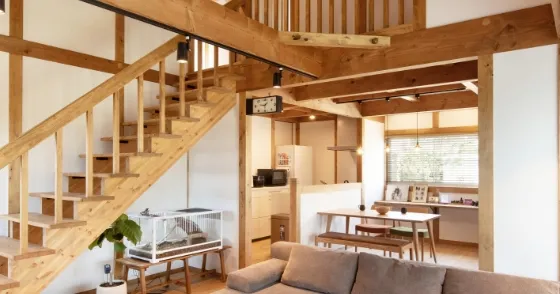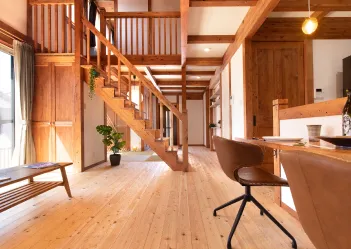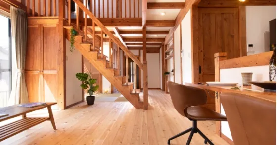 柱や梁がそのまま見える日本の伝統的なつくりです。木の質感を直接感じることができます。また、木が呼吸して自然に調湿してくれるから、いつでも心地よい空気感の中で生活できます。