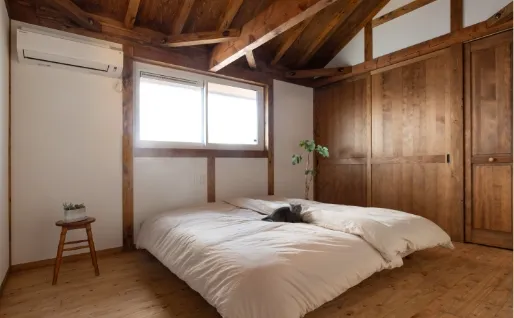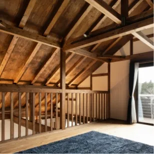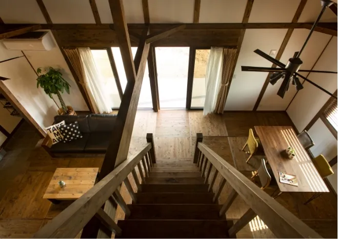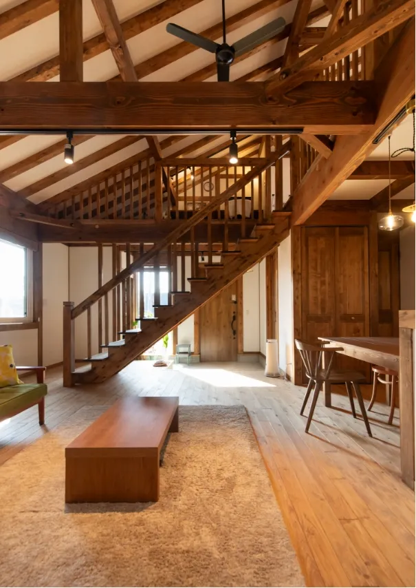 真壁づくりは、柱や梁の構造材を室内に見せる日本の伝統的な工法。家へ一歩足を踏み入れると、まず目に飛び込んでくるのが、存在感のある柱や梁です。素材感が活かされ、まるで森林浴をしているかのような心地よい空間で、深い安心感に包まれます。存分に感じられる -