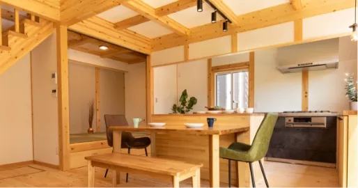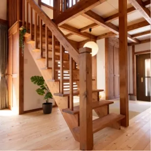 国産ひのきをふんだんに使った、日本の伝統工法「真壁づくり」の内装は、
